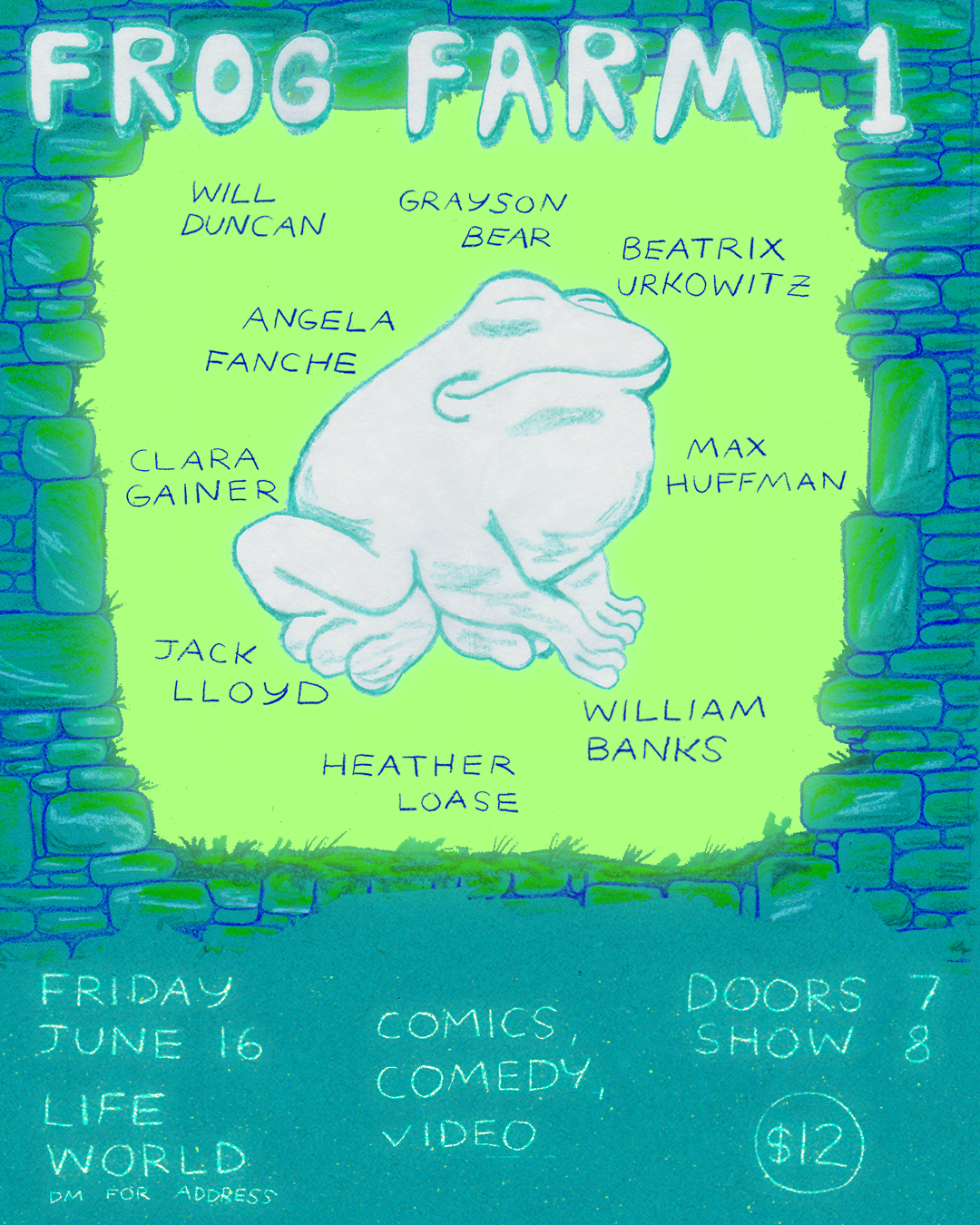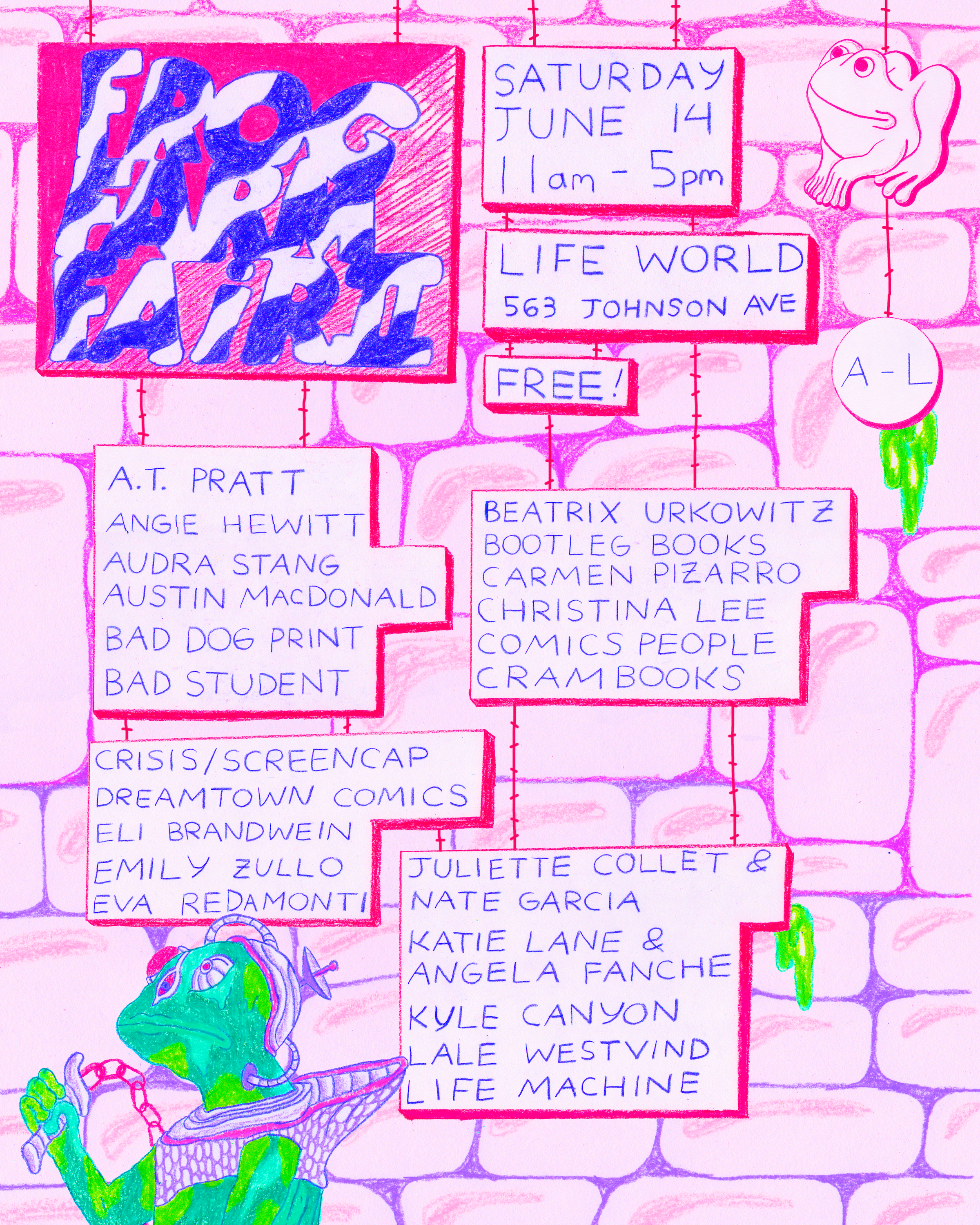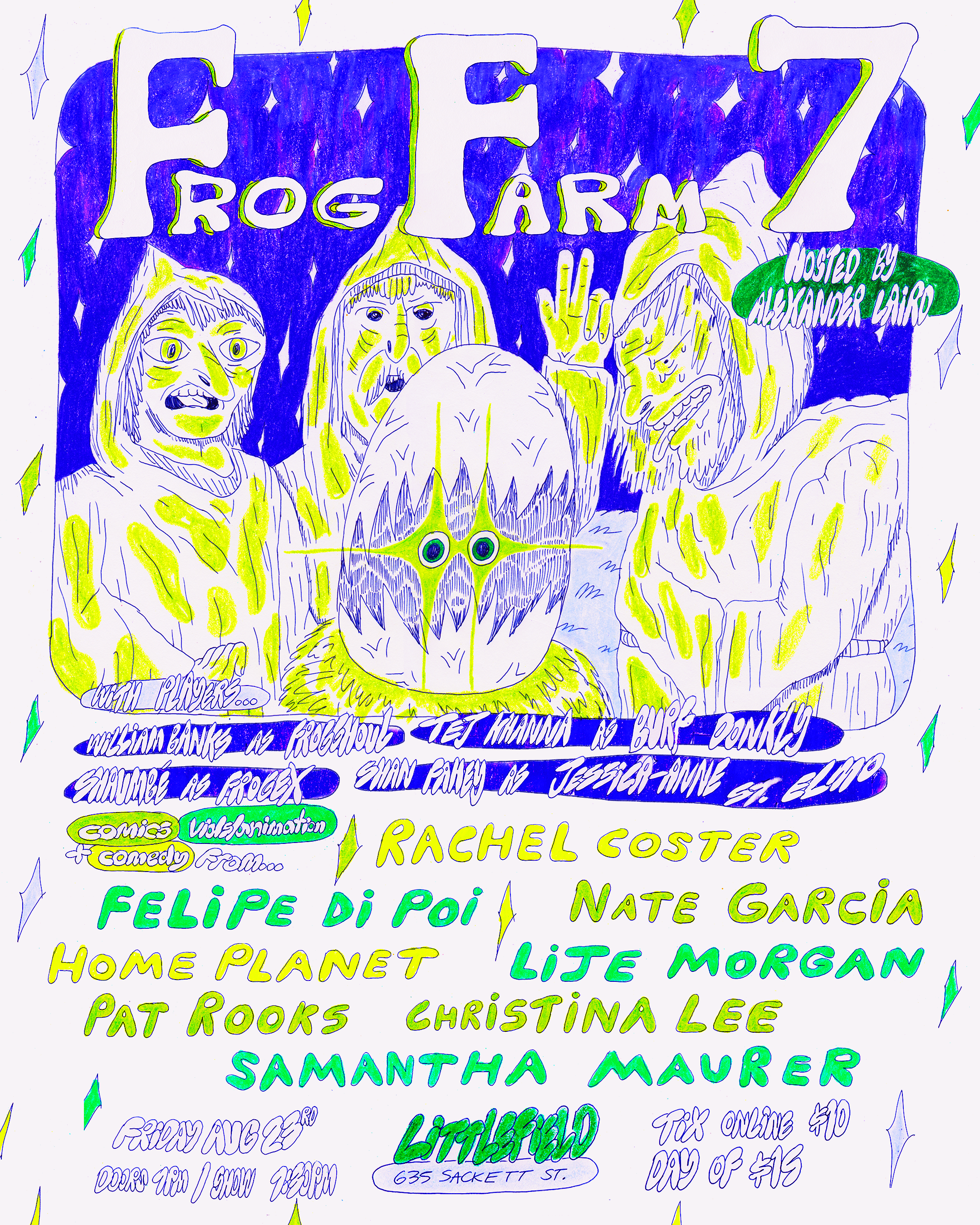 we have produced nearly twenty events since june 2023, majority of them part of our regular numbered “canon” shows in Brooklyn where we have comic readers, animations and an ongoing story with recurring characters such as fan favorites like “frogghoul” and “critter.”