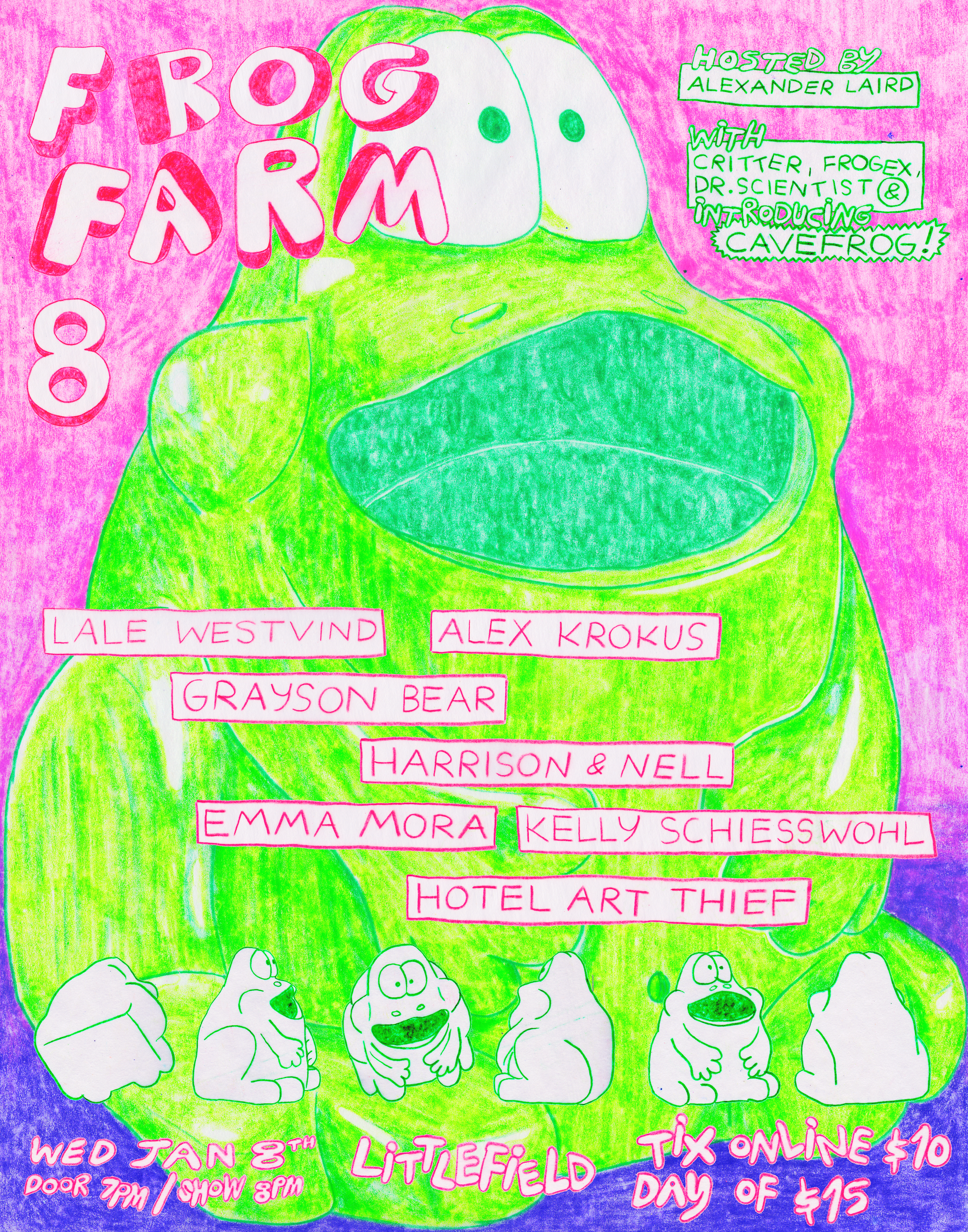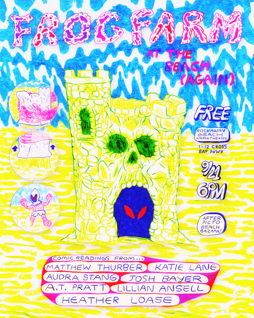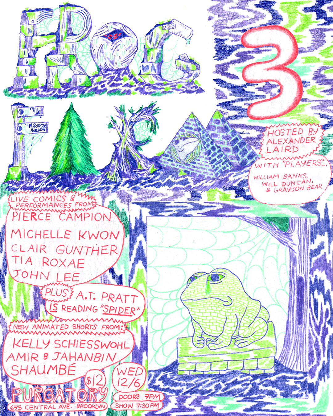 we have produced nearly twenty events since june 2023, majority of them part of our regular numbered “canon” shows in Brooklyn where we have comic readers, animations and an ongoing story with recurring characters such as fan favorites like “frogghoul” and “critter.”